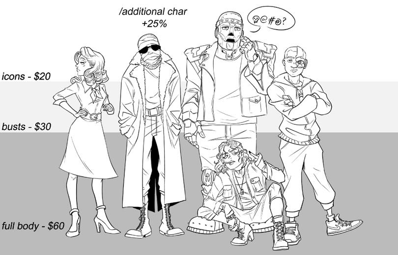 ComicsPrices for standard comic pages ranging from simple black and white ink pages to fully coloured pages.150 USD and up